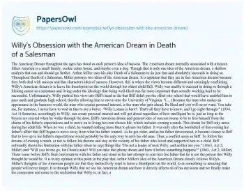 This essay will critically examine Willy Loman’s obsession with the American Dream in Arthur Miller’s “Death of a Salesman,” discussing how this pursuit affects his life and relationships. PapersOwl showcases more free essays that are examples of American Dream.