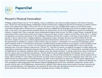 Mozart's Musical Innovation. (2019, Feb 04). Retrieved from https://hub.papersowl.com/examples/wolfgang-mozarts-biography/