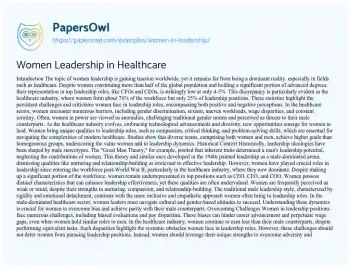 Women Leadership in Healthcare. (2021, May 10). Retrieved from https://hub.papersowl.com/examples/women-in-leadership/