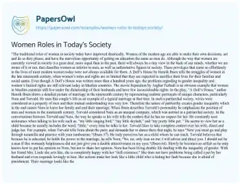 Women Roles in Today's Society. (2021, Feb 20). Retrieved from https://hub.papersowl.com/examples/women-roles-in-todays-society/
