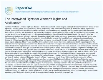 The Intertwined Fights for Women's Rights and Abolitionism. (2020, Feb 29). Retrieved from https://hub.papersowl.com/examples/womens-right-and-abolitionist-movement/