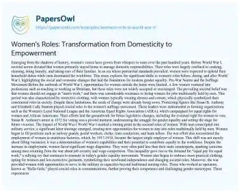 Women's Roles: Transformation from Domesticity to Empowerment. (2022, Apr 15). Retrieved from https://hub.papersowl.com/examples/womens-role-in-world-war-1/