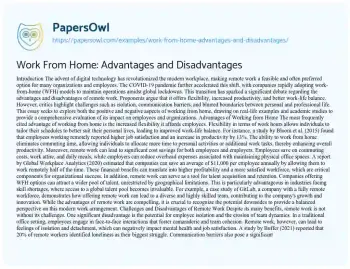 Work From Home: Advantages and Disadvantages. (2024, Dec 27). Retrieved from https://hub.papersowl.com/examples/work-from-home-advantages-and-disadvantages/