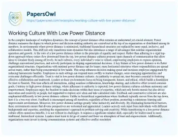 Working Culture With Low Power Distance. (2024, Apr 22). Retrieved from https://hub.papersowl.com/examples/working-culture-with-low-power-distance/