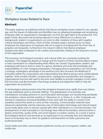 Workplace Issues Related to Race. (2021, Jun 26). Retrieved from https://hub.papersowl.com/examples/workplace-issues-related-to-race/