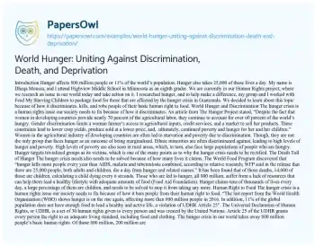 World Hunger: Uniting Against Discrimination, Death, and Deprivation