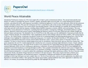 World Peace Attainable. (2024, Dec 27). Retrieved from https://hub.papersowl.com/examples/world-peace-attainable/