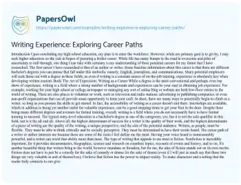 Writing Experience: Exploring Career Paths. (2023, Aug 19). Retrieved from https://hub.papersowl.com/examples/writing-experience-exploring-career-paths/