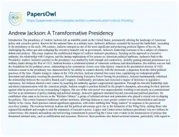 Andrew Jackson: A Transformative Presidency. (2019, Mar 15). Retrieved from https://hub.papersowl.com/examples/written-communication-critical-thinking/