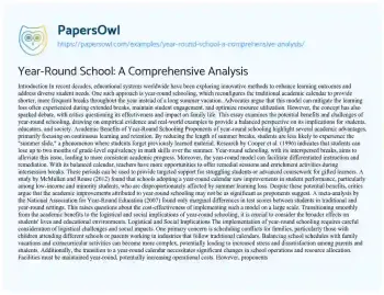 Year-Round School: A Comprehensive Analysis. (2024, Dec 27). Retrieved from https://hub.papersowl.com/examples/year-round-school-a-comprehensive-analysis/