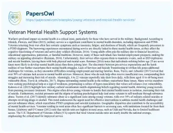 Veteran Mental Health Support Systems. (2019, Jan 29). Retrieved from https://hub.papersowl.com/examples/young-veterans-and-mental-health-services/