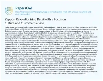Zappos: Revolutionizing Retail with a Focus on Culture and Customer Service. (2023, Nov 24). Retrieved from https://hub.papersowl.com/examples/zappos-revolutionizing-retail-with-a-focus-on-culture-and-customer-service/