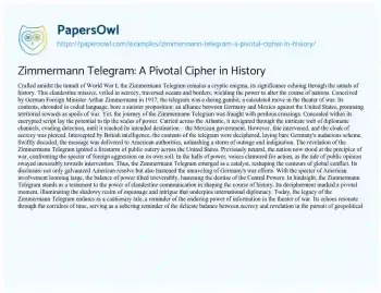 Zimmermann Telegram: A Pivotal Cipher in History. (2024, Feb 27). Retrieved from https://hub.papersowl.com/examples/zimmermann-telegram-a-pivotal-cipher-in-history/