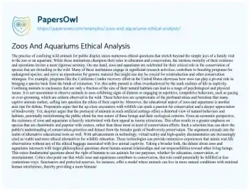 Zoos And Aquariums Ethical Analysis