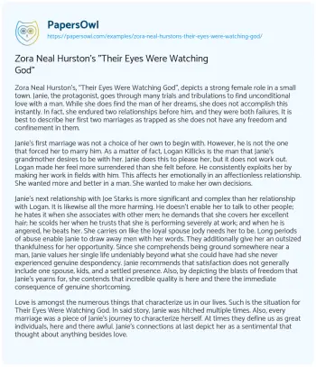 Zora Neal Hurston’s "Their Eyes Were Watching God". (2021, Mar 05). Retrieved from https://hub.papersowl.com/examples/zora-neal-hurstons-their-eyes-were-watching-god/
