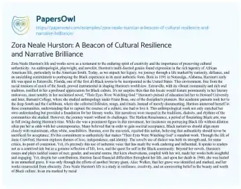 Zora Neale Hurston: A Beacon of Cultural Resilience and Narrative Brilliance. (2023, Oct 26). Retrieved from https://hub.papersowl.com/examples/zora-neale-hurston-a-beacon-of-cultural-resilience-and-narrative-brilliance/