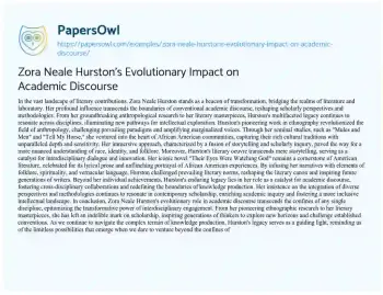 Zora Neale Hurston's Evolutionary Impact on Academic Discourse. (2024, Mar 25). Retrieved from https://hub.papersowl.com/examples/zora-neale-hurstons-evolutionary-impact-on-academic-discourse/